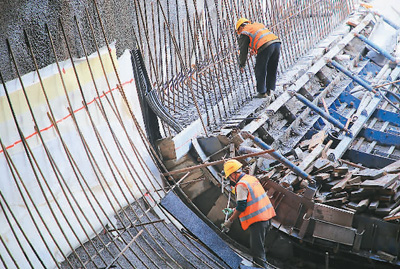 正在建設中的溫玉鐵路是連接長江經濟帶和海上絲綢之路的重要通道,也是浙江省臺州市第一條地方性鐵路項目,采用PPP模式投資建設。建成后,從玉環前往杭州僅需1個多小時。圖為鐵路建設者在溫玉鐵路彭宅隧道工程施工現場作業。