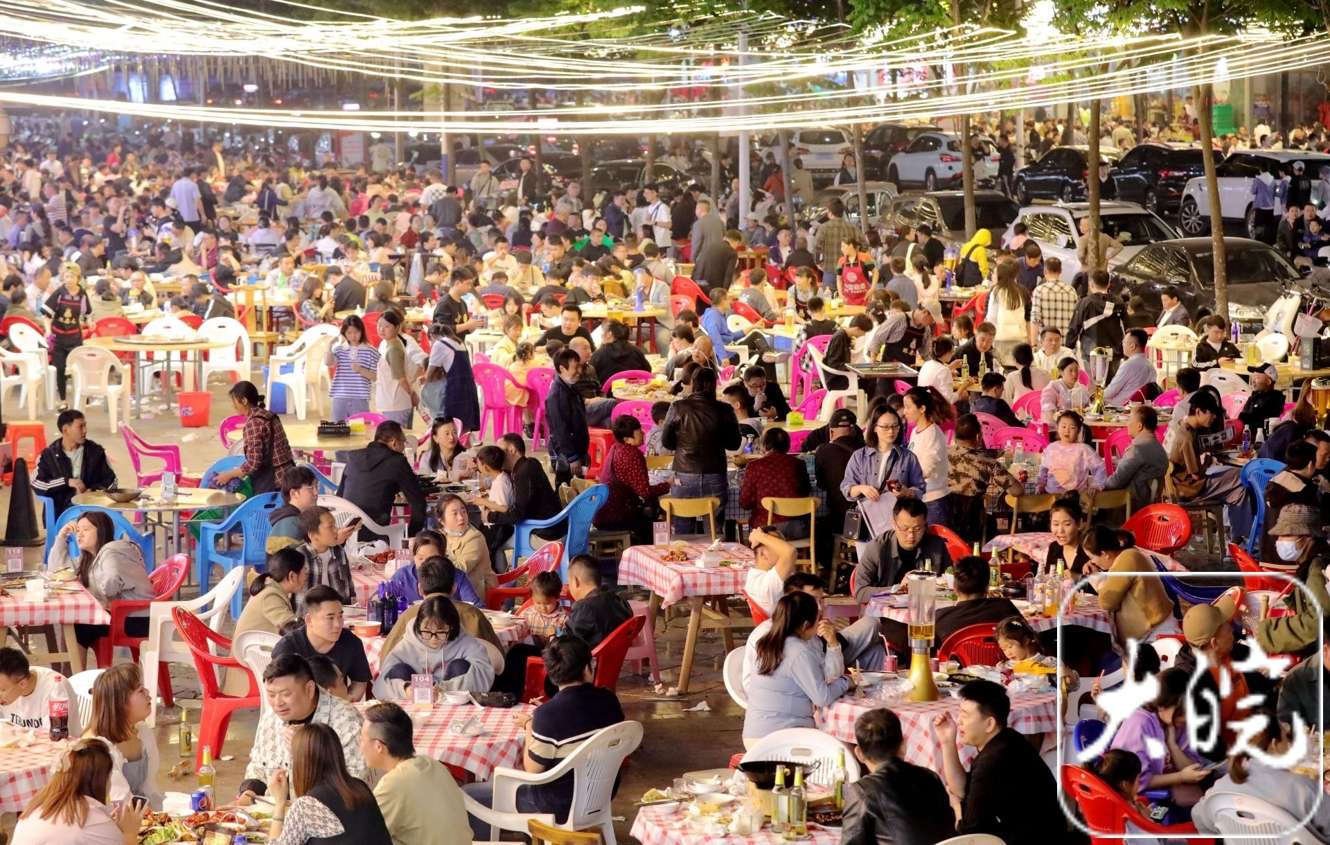 到七街,品美食。“五一”假期,安慶市宜秀區七街夜市燈火通明,人流如織,攤位依序排開,熱火朝天的特色小吃攤,吸引了不少市民及游客前來品嘗,“夜市經濟”讓游客感受到濃濃煙火氣。