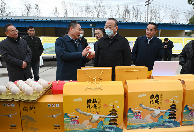 在安慶永強農業,張祥安分別走進番鴨育種基地和即將投產的禽類定點屠宰及冷鏈物流項目現場,與企業負責人親切交談,了解企業生產經營情況。得知新項目建成投產后,可直接帶動千余人就業,輻射帶動3千人進入番鴨產業合作致富,張祥安表示肯定,鼓勵企業強化產品研發,不斷延長產業鏈條,提高產品附加值和市場競爭力,加速發展壯大。他要求,要用好政策組合拳,大力培育扶持有市場、有帶動能力的農業農頭企業,助力企業做大做強,為鄉村全面振興提供有力支撐。