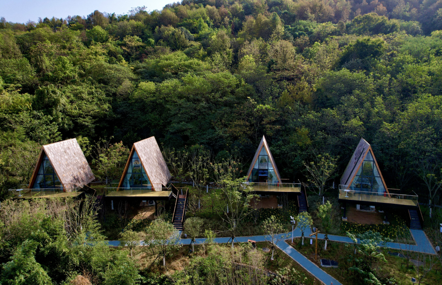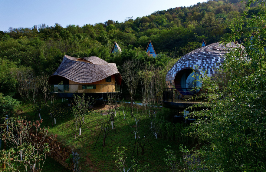 三角屋、鳥巢屋、荷葉屋……走進(jìn)安慶市宜秀區(qū)羅嶺鎮(zhèn)的樹蛙部落度假區(qū),只見綠樹掩映間一棟棟個性十足的樹屋客房蜿蜒而現(xiàn)。坐落于此的樹蛙,遵循了7500年前的部落概念,它已經(jīng)融入這片生長在自然山脈下的傳統(tǒng)村落里,形成了與自然共融共生的和諧畫卷。
