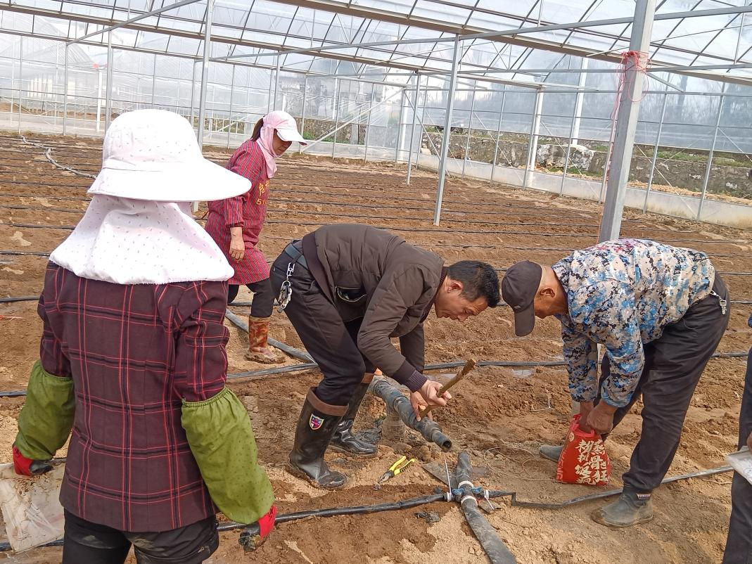 初春時節,安慶市宜秀區五橫鄉白林村蔬菜大棚里一派繁忙景象,村民們正在緊張地忙碌著。剛剛施過有機肥的地里,機械手駕駛著旋耕機來回翻耕,在他的身后泛起一股股泥土的芬芳。鄰近的大棚里,村委鄧振坤一邊作為技術員正帶領村民鋪設塑料滴灌,指導村民按規范要求操作;一邊作為村紀檢委員監督大棚各項工作運轉情況。見他將已埋設好的三角閥打開,立時一道道霧狀的水花噴涌而出,在陽光的照射下五彩繽紛。水流潤濕了泥土,讓有機肥得以充分發酵,這是種植莊稼的關鍵一步。