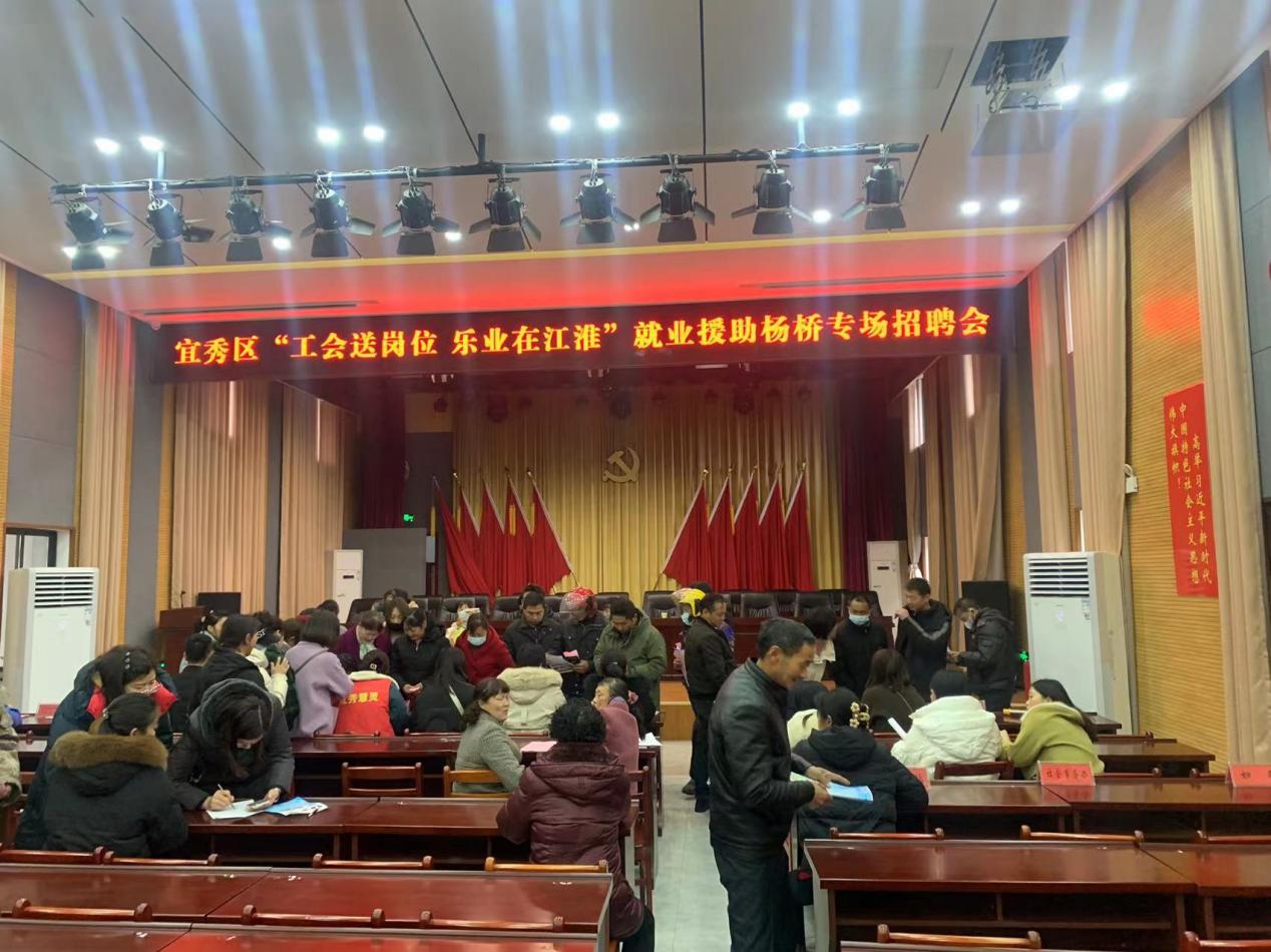 近日,由楊橋鎮工會牽頭聯合楊橋各村(社區)舉辦的“工會送崗位,樂業在江淮”專場招聘會在楊橋鎮會展中心拉開大幕,吸引了眾多求職者前來咨詢、應聘,現場人頭攢動,一派紅火熱鬧。