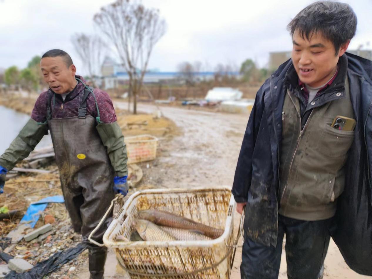 白澤湖鄉(xiāng)大楓社區(qū):魚(yú)塘豐收起魚(yú)忙,漁民歡喜抱魚(yú)歸
