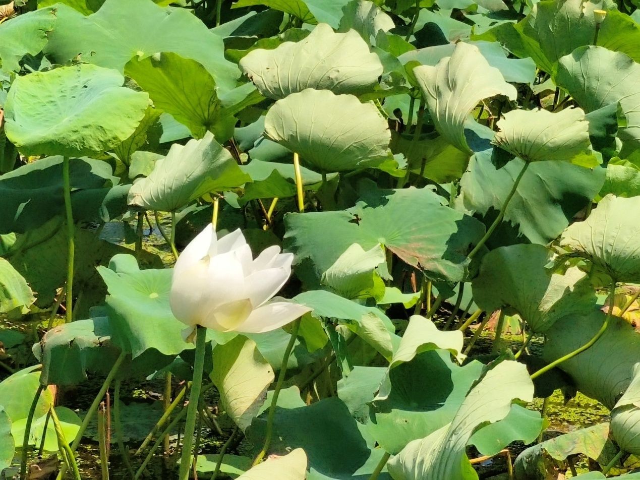 接天蓮葉無窮碧,映日荷花別樣紅。炎炎夏日,宜秀區(qū)白澤湖鄉(xiāng)芭茅村百畝蓮藕基地里荷花在陽(yáng)光下盛開,清新動(dòng)人,與周圍的山水相融合,吸引了不少游客前來觀賞。
