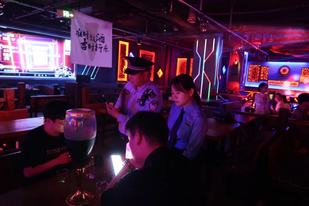 檢查組隨機選取10家KTV、酒吧,通過查看花名冊比對從業人員身份、調閱接待登記臺賬、詢問現場負責人等方式,重點排查是否存在雇傭未成年人或違規接待未成年人等情況;是否嚴格遵守法律法規張貼“未成年人禁入”、“禁止向未成年人出售煙酒”等警示標識;是否按規定對消費者的身份證等有效證件進行核對、登記并記錄相關信息、是否嚴格履行強制報告等情況。
