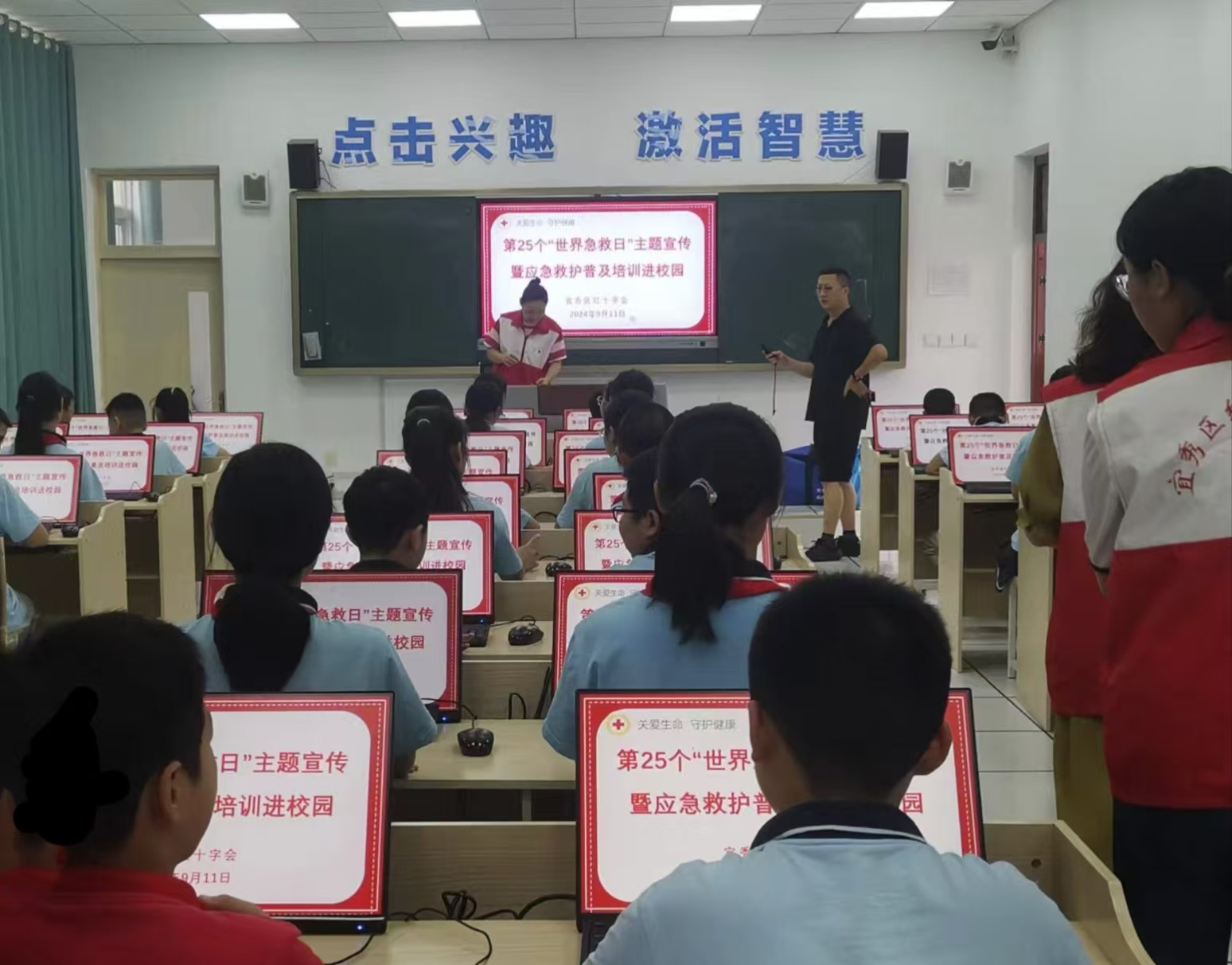 為傳播紅十字文化,加強(qiáng)生命健康安全教育,9月11日,在2024年“世界急救日”即將來(lái)臨之際,宜秀區(qū)紅十字會(huì)聯(lián)合區(qū)衛(wèi)健委來(lái)到轄區(qū)白澤湖鄉(xiāng)月形小學(xué)開(kāi)展第25個(gè)“世界急救日”主題宣傳暨應(yīng)急救護(hù)知識(shí)普及培訓(xùn)活動(dòng),該校六年級(jí)50余名學(xué)生參加培訓(xùn)。