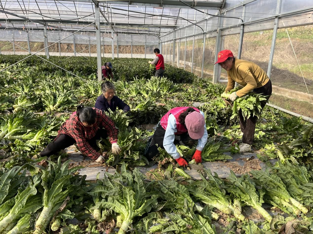 春日,在羅嶺鎮鳳溪社區蔬菜大棚內,一株株萵苣翠綠挺拔,農戶們在棚間穿梭,忙著采摘、挑選、打包,新采摘的萵苣“坐”上了發往周邊城市的貨車,一幅繁忙熱鬧的豐收景象呈現在眼前。