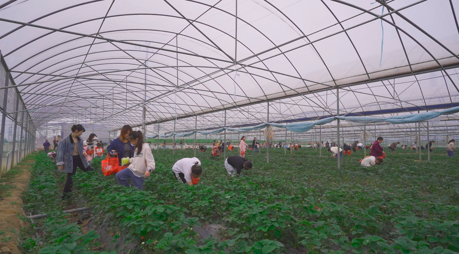 正值草莓飄香季,只見(jiàn)露營(yíng)基地旁邊的幾個(gè)草莓棚一字排開,棚里一壟壟草莓生機(jī)勃勃,長(zhǎng)勢(shì)喜人,主播帶著聽(tīng)友和小朋友們有序排隊(duì)入棚采摘,一個(gè)個(gè)鮮紅、飽滿、嬌艷欲滴的草莓散發(fā)著陣陣清香,大家一邊采摘,一邊品嘗,盡享田園親子美好時(shí)光。