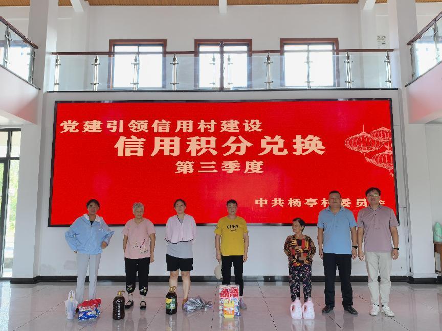 信用積分“促治理”。堅持黨建引領,鞏固提升黨建引領信用建設,全村農戶信息采集,常態化開展信用積分兌換,將“積分制”納入精品示范村建設管理全過程,通過兌換積分獎勵,引導村民自覺參與精品示范村建設和治理中。今年以來,積分超市已完成3個季度740積分兌換,兌換人次達125人,全村治理水平明顯提高,實現鄉村治理有章可循,保障鄉村振興有序推進。