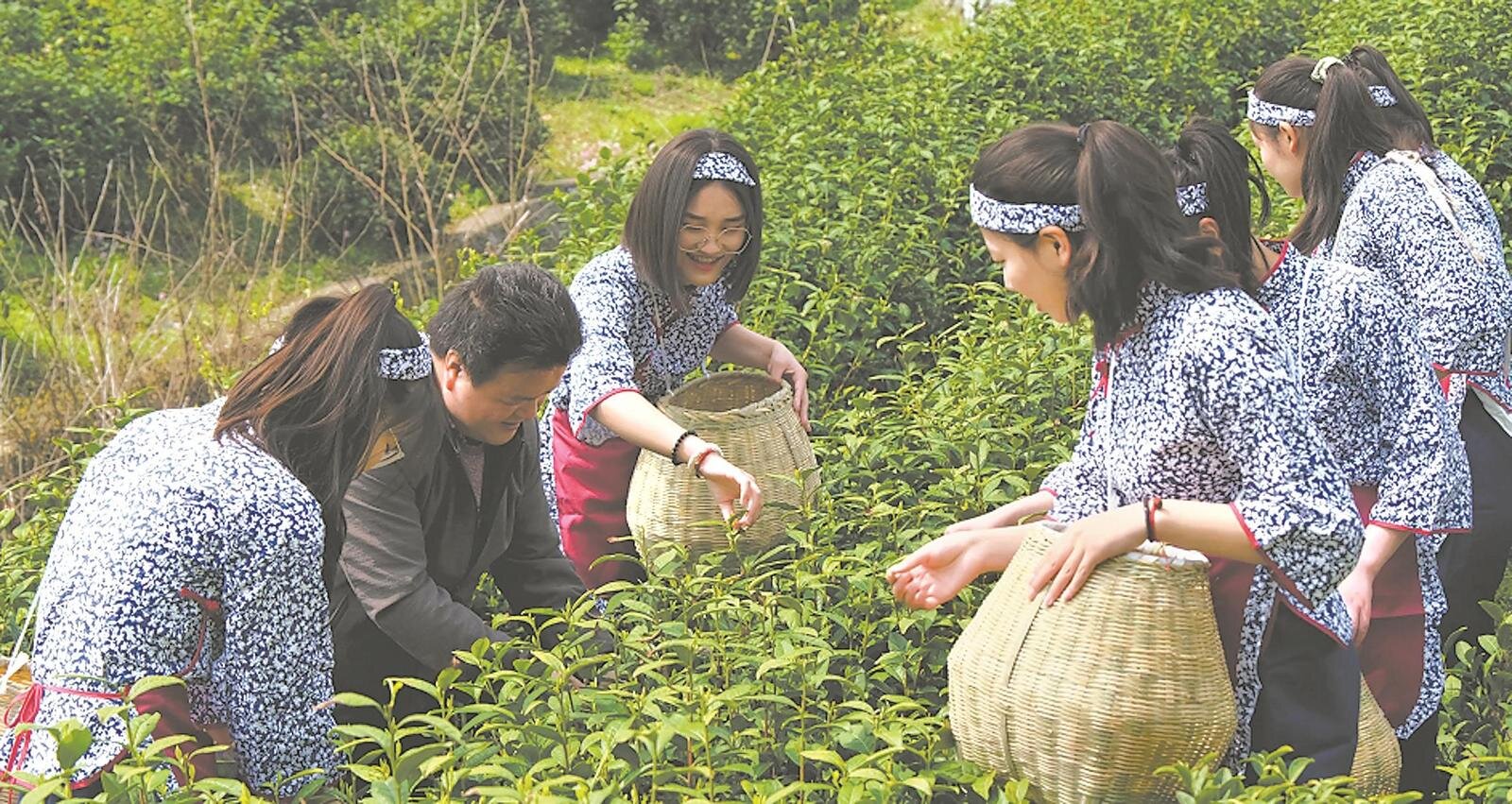 近日,安慶市宜秀區五橫鄉曰公社區林場采茶基地,社區干部在幫茶農采茶。該社區采取“集體+合作社”的模式,種植茶葉900畝,帶動當地農戶就業增收。
