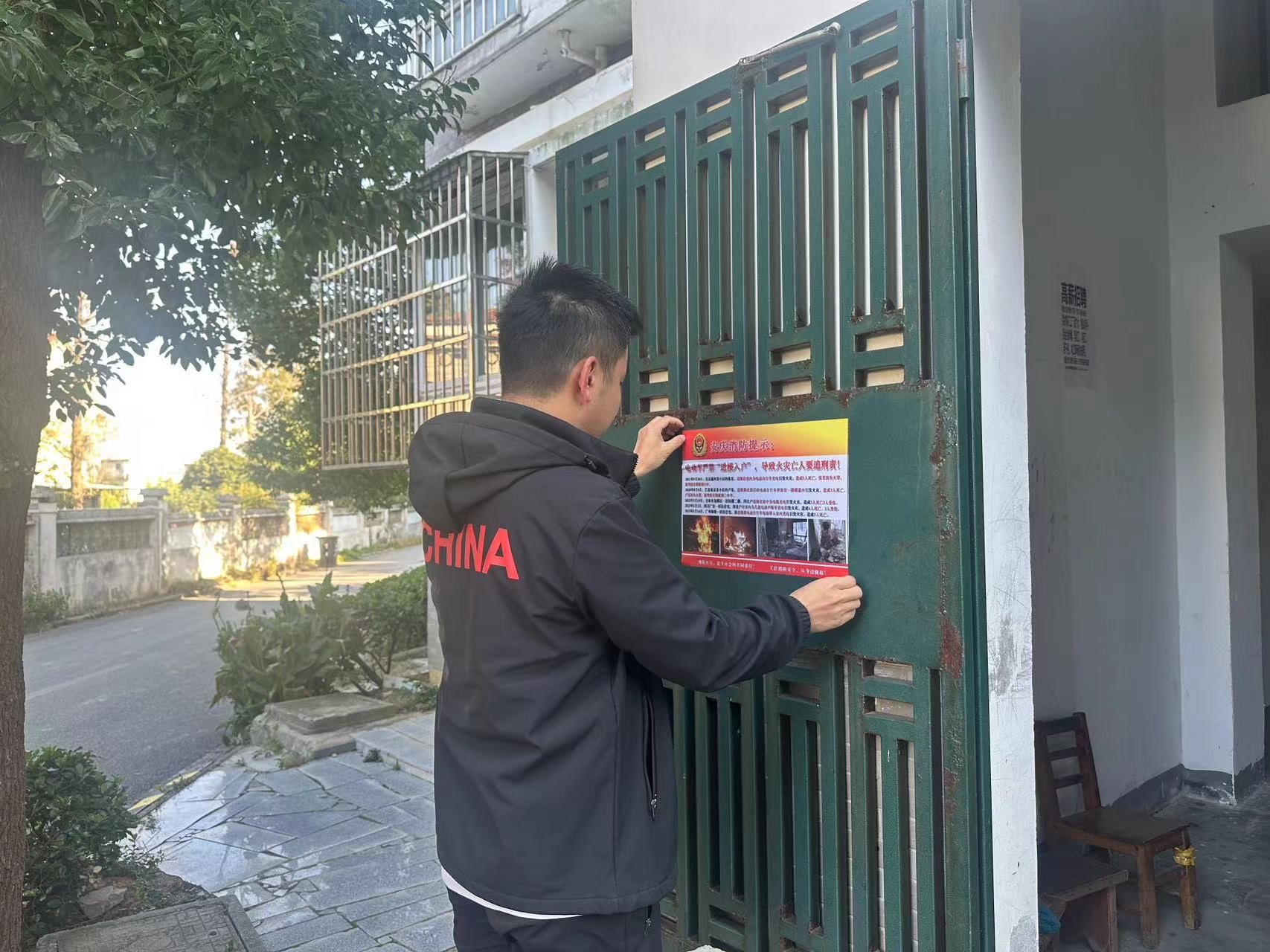 整治行動中,網格員和志愿者采取檢查、宣傳、勸導同步進行的方式,向小區住戶宣講“飛線”充電的隱患危害、日常安全用電常識,對小區消防通道內亂停亂放、樓梯間堆放雜物等問題進行全面排查整治。在整治過程中發現有3戶居民從窗戶私拉亂接電源線給樓下電動車充電的問題后,網格員立即上門耐心勸導并告知發生不安全事故的隱患,要求現場進行整改,做到發現一例、整治一例、教育一例。