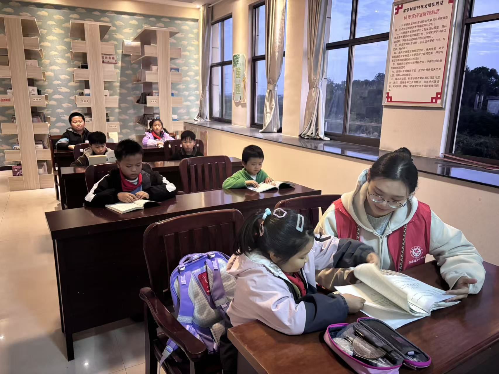 在關愛兒童成長方面,龍華村打造了“文化輔導+實踐體驗”的雙重服務模式。村里充分利用農家書屋的資源優(yōu)勢,組織大學生志愿者組成服務隊伍,定期開展公益閱讀和課業(yè)輔導活動。每到周末和節(jié)假日,農家書屋就成了孩子們的“第二課堂”:志愿者們引導孩子們挑選喜愛的書籍,開展讀書分享會,培養(yǎng)閱讀興趣;針對孩子們在學習中遇到的難題,志愿者們耐心講解、悉心指導,幫助他們攻克學習難關。