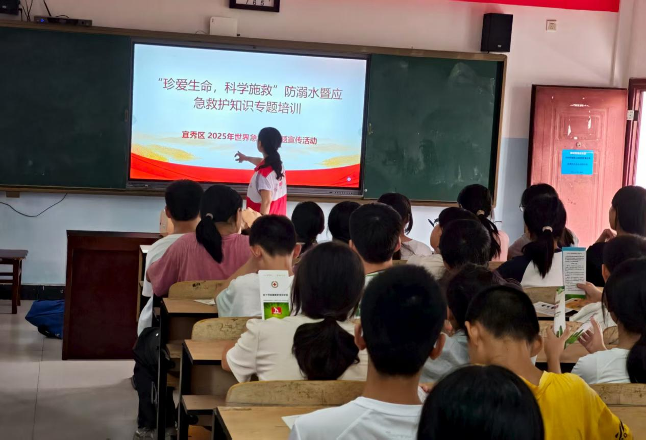 為深化青少年安全防范意識,推廣普及應(yīng)急救護常識,增強應(yīng)對突發(fā)溺水狀況的自救與互救技能,9月12日,在第26個“世界急救日”來臨之際,宜秀區(qū)紅十字會、衛(wèi)健委,走進轄區(qū)大龍山鎮(zhèn)初級中學(xué),聯(lián)合舉辦了一場以"珍愛生命,科學(xué)施救"為核心的防溺水及應(yīng)急救護知識講座。此次講座為該校705班學(xué)生提供了一場既生動又具有實際操作意義的生命安全教學(xué)。