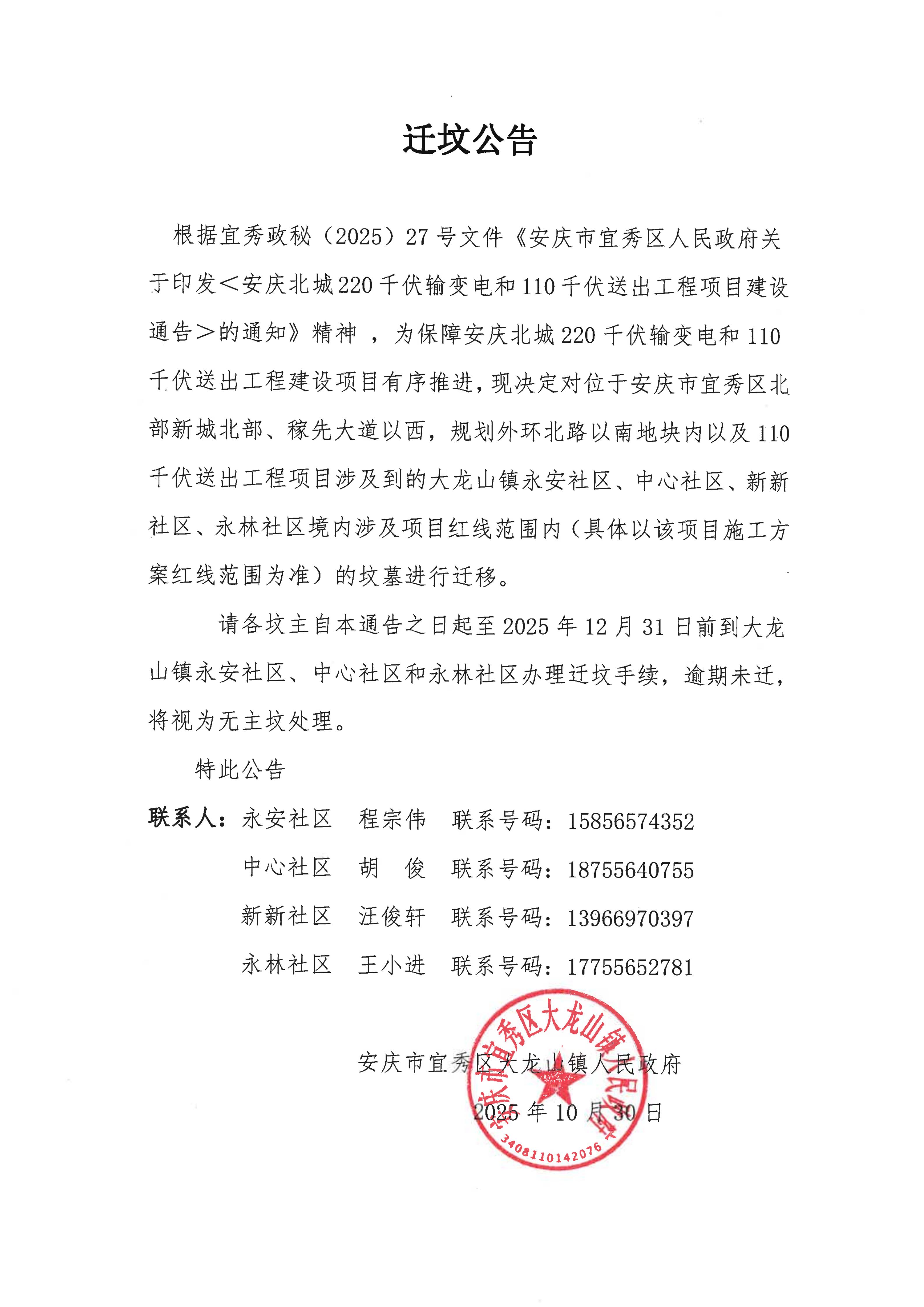 遷墳公告