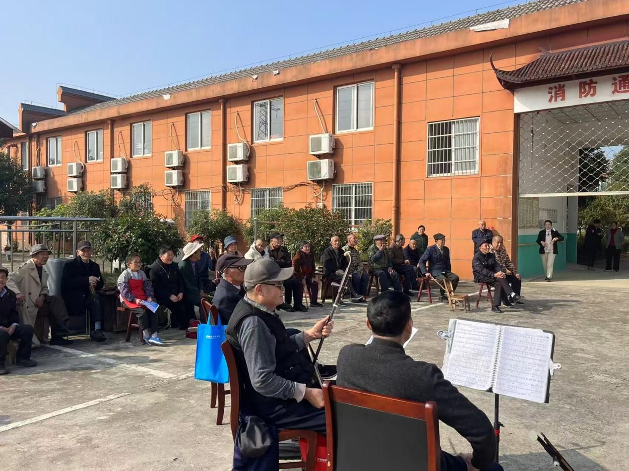活動現場氣氛溫馨熱烈,黃梅戲以其婉轉唱腔和濃郁鄉音深受老年群體喜愛,演員們精湛的表演讓老人們看得津津有味,不時跟著旋律輕輕哼唱,臉上洋溢著幸福的笑容,現場掌聲、笑聲此起彼伏。