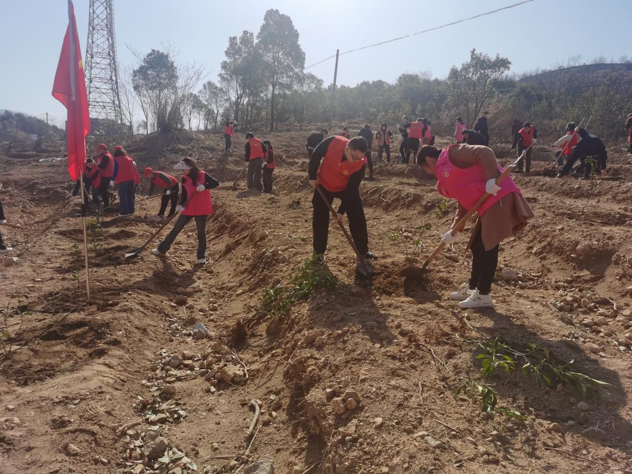 安徽網安慶消息    三月春風至,植樹正當時。為發揮基層黨組織統領作用,增強黨員干部對“綠水青山就是金山銀山”的責任意識、使命意識,營造“植綠、護綠、愛綠”的濃厚氛圍,近日,宜秀區大龍山鎮中心社區聯合幫扶單位及部分黨員、志愿者開展義務植樹活動,以實際行動為美麗鄉村建設增綠添彩。