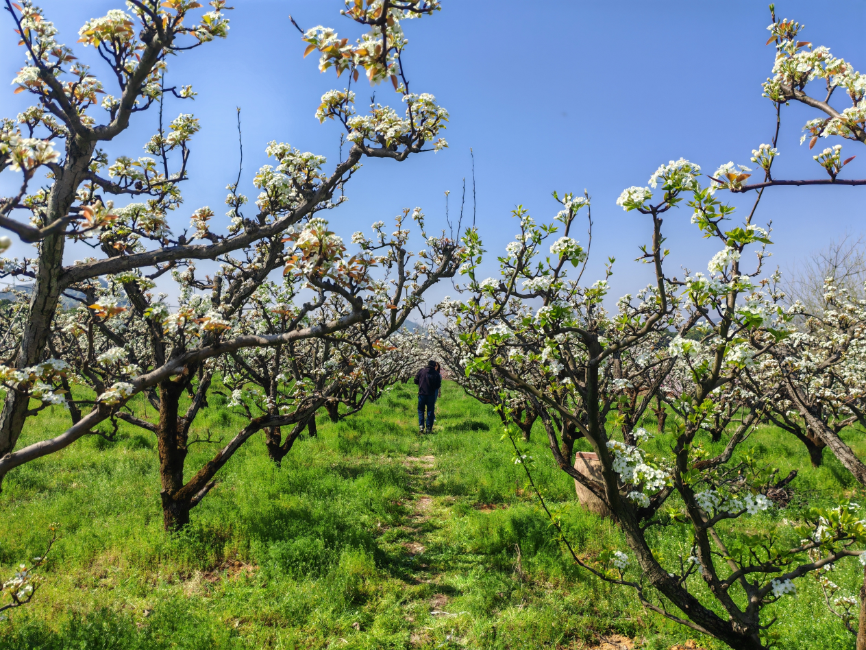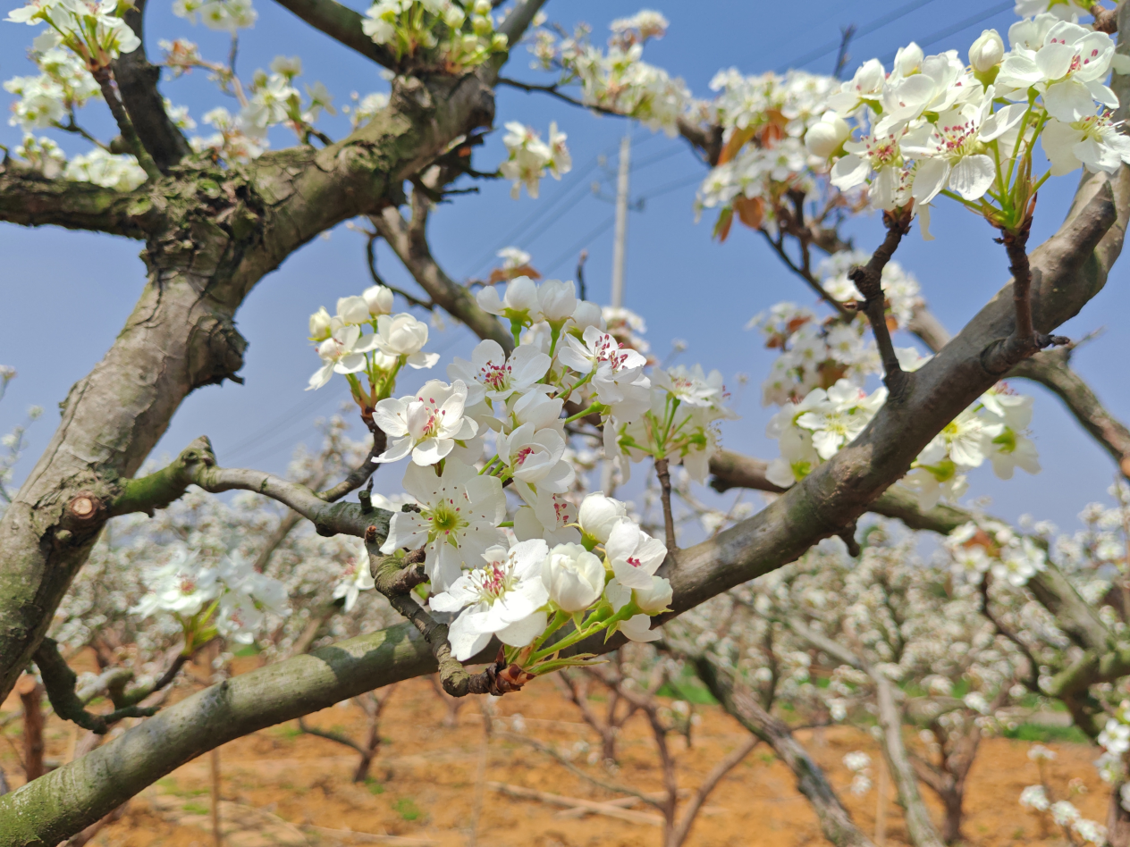 走進(jìn)生態(tài)梨園,滿樹(shù)梨花競(jìng)相綻放,潔白的花瓣層層疊疊,簇?fù)碇埸S色的花蕊,在微風(fēng)中輕輕搖曳,散發(fā)著淡淡的清香。蜜蜂在花叢中忙碌著,為梨園的寧?kù)o增添了幾分生機(jī)與活力。游客們漫步其間,或駐足欣賞,或拍照留念,紛紛記錄下這美好的瞬間。